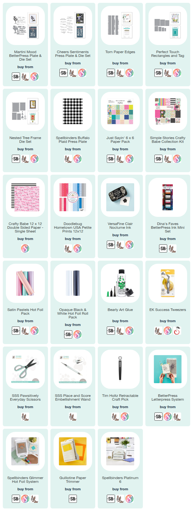 Hello, friends! I hope you have all been well. I am back from a bit of a break and am just getting back into my craft room. I decided to ease back in with some fun, clean and simple cards with the Happier Hour Collection from Spellbinders. I used one of the new sets – the Martini Mood BetterPress Plate & Die Set – along with a bunch of patterned paper. This plate is so fun, and I already know exactly who these cards are going to!