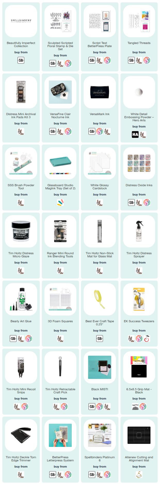 Hello, friends! I promised in my last video that I would be back to see if I could stamp on one of the panels I had made with Distress Oxides on glossy paper. The good news is that I was able to stamp it, and I really enjoyed making this card! It has the look and feel of mixed media for those of us who wish we could do mixed media but don’t really know where to start. And that is all thanks to the new Beautifully Imperfect Collection from Spellbinders.